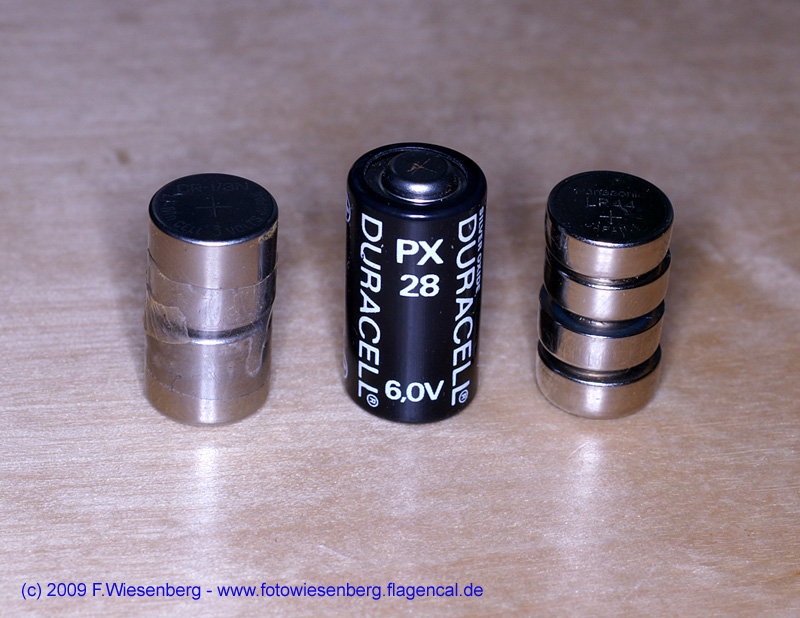 Telespect 500mm 1:11 Original-Batteriel (mittig) und Alternativen